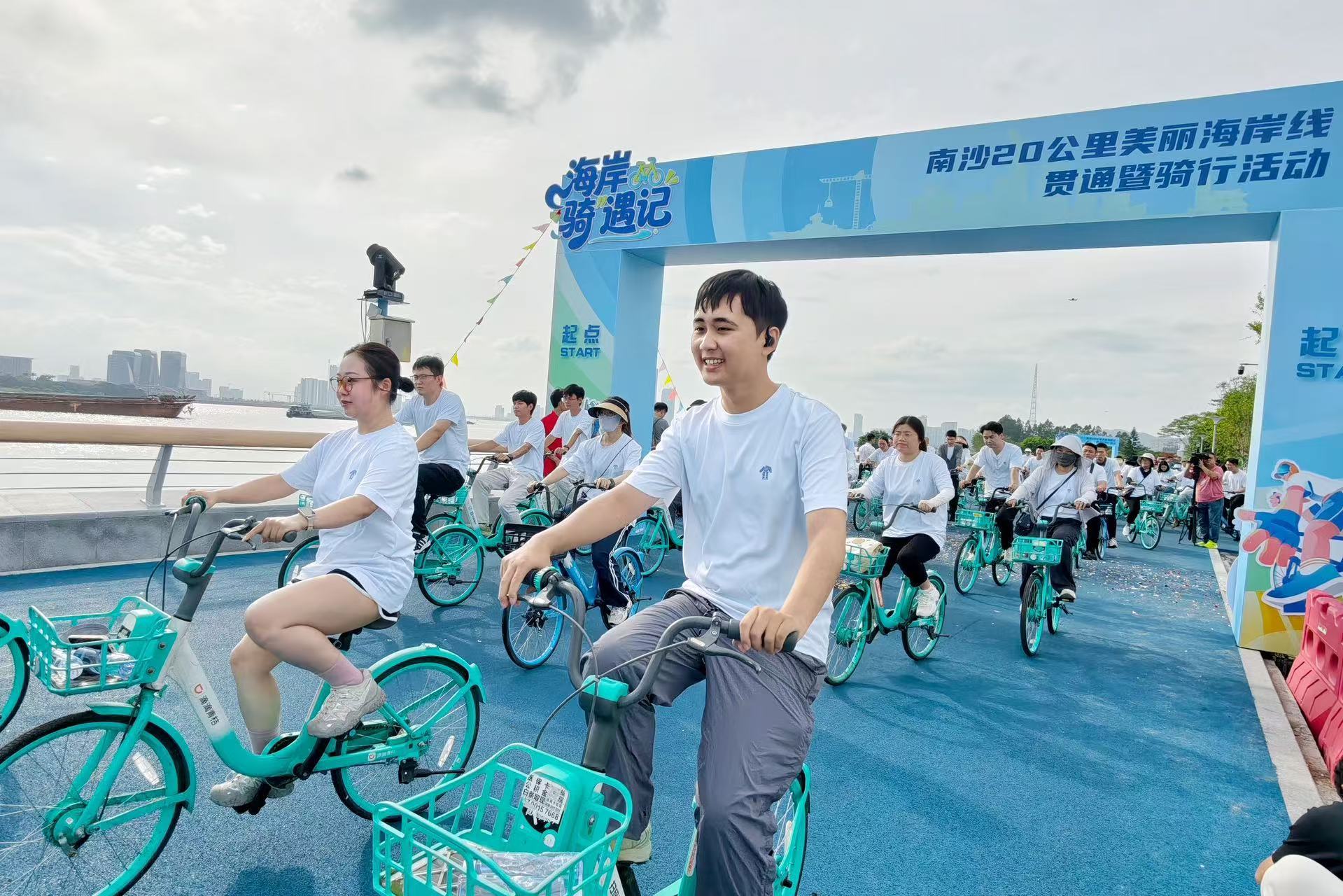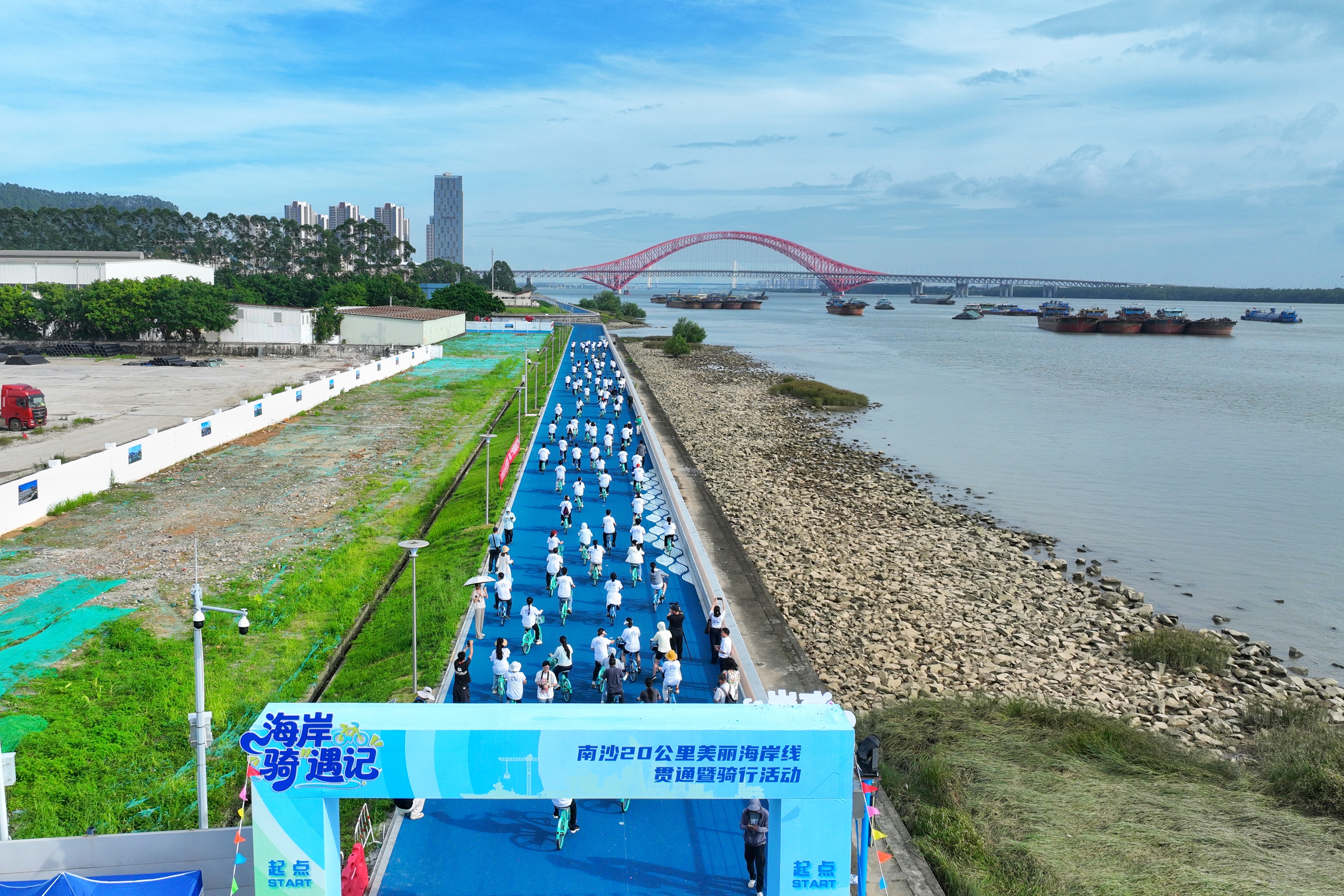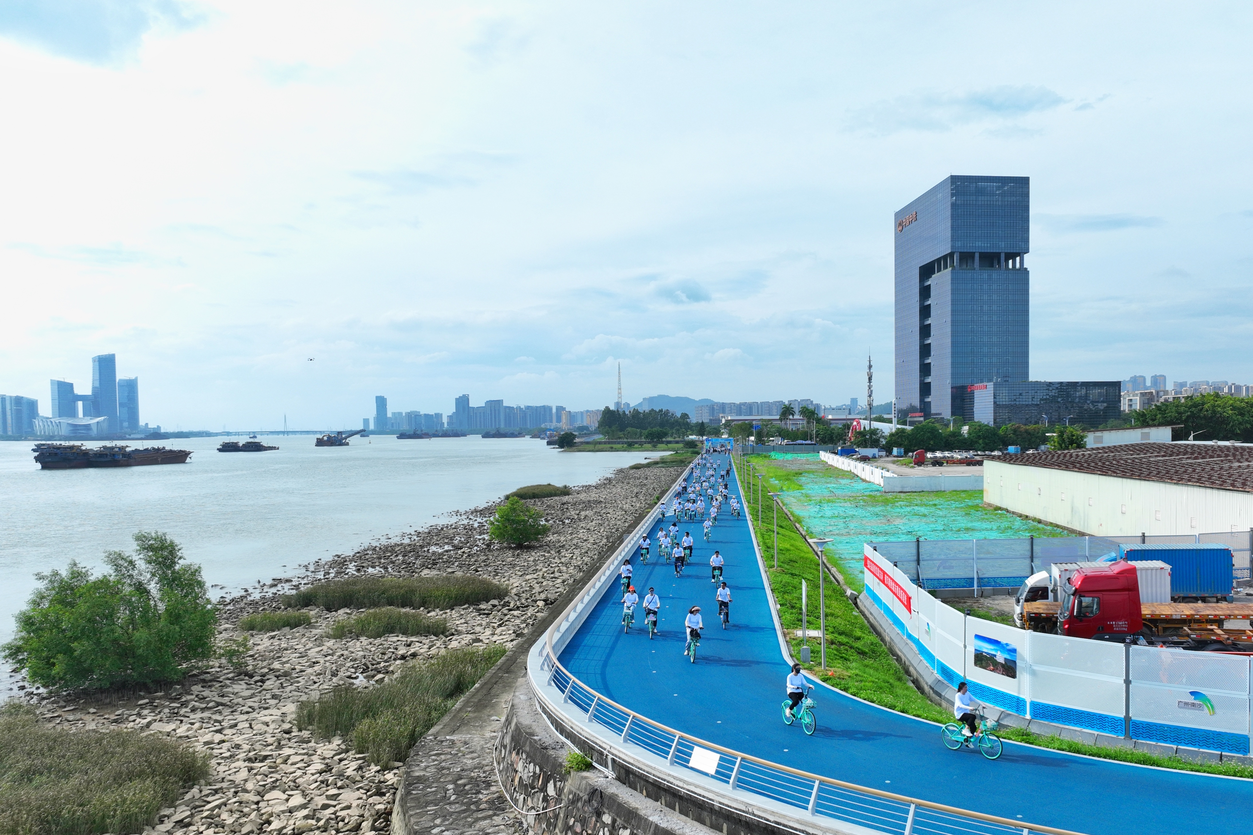 随着出发口令下达,活动参与者从隧道博物馆起点有序启程,沿着新建成的滨海慢行系统一路途经明珠湾大桥、慧谷超级堤、滨海公园、天后宫等标志性节点,并最终抵达南沙大酒店终点。