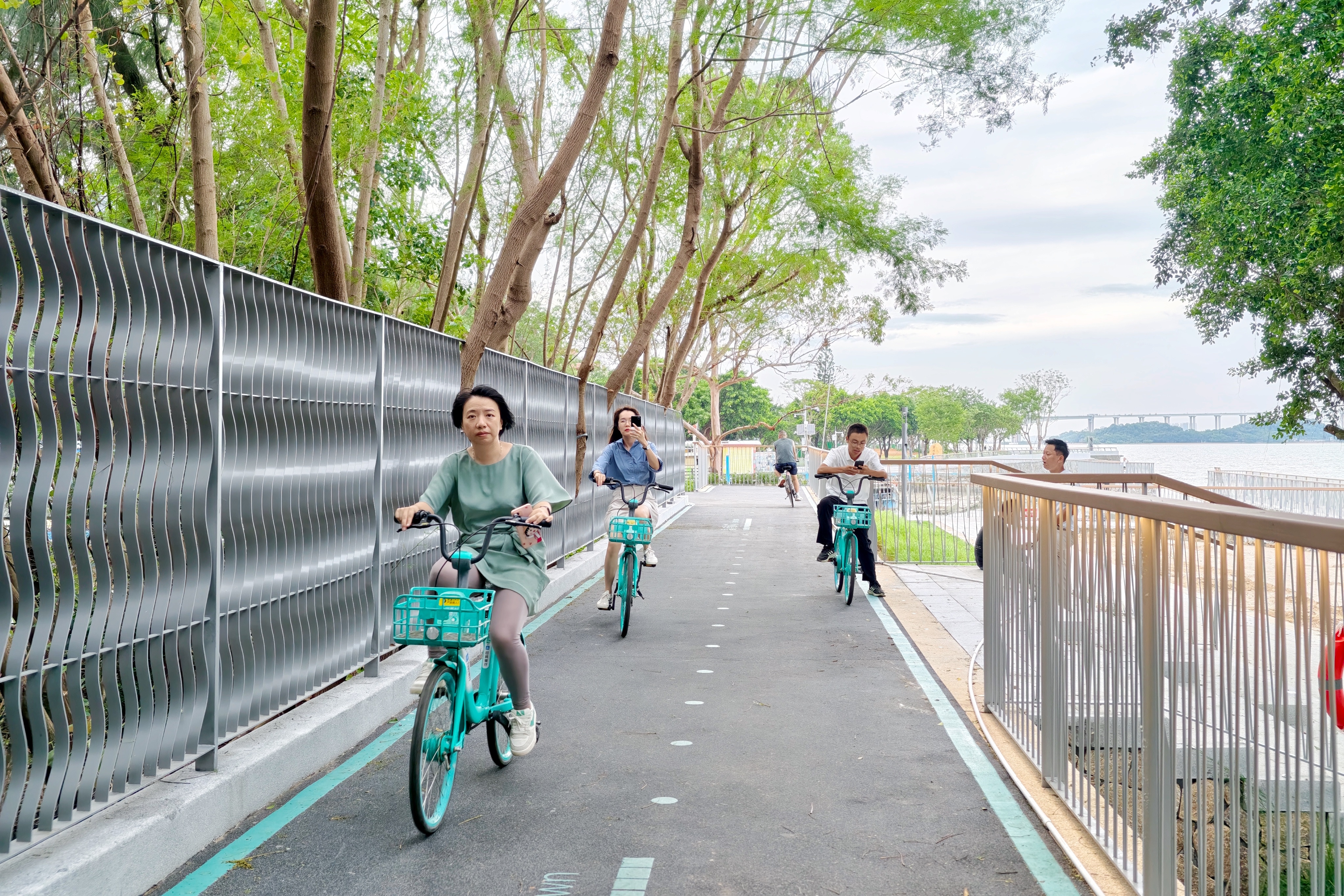 “海景非常开阔,道路也非常平坦,骑行体验非常棒!”参与骑行的郑女士感叹道,“以前南沙就缺少这样的休闲区,现在20公里海岸线建成之后,有空时带着家人来这里吹吹海风、看看风景很不错。”
